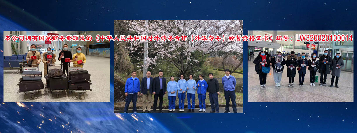 是從事對外勞務合作的專業(yè)性公司,本公司擁有國家商務部頒發(fā)的《中華人民共和國對外勞務合作(外派勞務)經(jīng)營資格證書》編號:LW320020100014。從一九九五年開展勞務合作以來,積極開拓進取,先后向日本、加拿大、新加坡、韓國等國家派遣勞務人員近1萬5千余人。勞務合作行業(yè)主要有服裝(車工、裁剪、整燙、制板、維修、車間管理)、針織業(yè)(織布、漂染、針織、橫機、套口羊毛衫工)、建筑工程(技術人員、瓦工、鋼筋工、拌灰工、木工、油漆工、電工、鋁合金工、水暖工等)、機械工(銑床、車床、沖床、鉆床、鑄造等)電焊工(壓力容器、亞弧焊、建筑設備安裝、船舶、管道工)、遠洋捕撈(職務船員、普通漁工、水手),高級廚師(川菜、粵菜、京菜、淮揚菜)、電子裝配、園藝、蔬菜種植、桑蠶飼養(yǎng)、海、淡水養(yǎng)殖、護士、翻譯(英語、日語、韓國)等,日本辦事處設在日本東京、廣島主要負責管理和服務日本研修生及貿(mào)易方面的聯(lián)絡工作,國外辦事處和中國公司現(xiàn)有工作人員25人,專職勞務工作人員10人,從事勞務行業(yè)均10年以上,翻譯、培訓教師5人,外教2人,會計3人,業(yè)務人員5人。